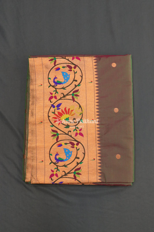 Collection: Round Lotus Peacock Brocade Paithani Saree